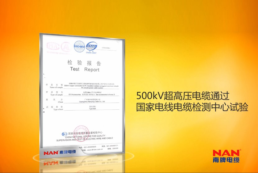 公司是ISO質(zhì)量處理系統(tǒng)、環(huán)境處理系統(tǒng),作業(yè)健康安全處理系統(tǒng)、計量確保系統(tǒng)認(rèn)證企業(yè),具有廣東省電纜作業(yè)僅有的工程技術(shù)研討開發(fā)中心,南洋電纜具有多項專利并多次參與國家規(guī)范及作業(yè)規(guī)范的擬定,不斷立異開發(fā)新產(chǎn)品。35kV及以下電纜產(chǎn)品獲得全國工業(yè)產(chǎn)品出產(chǎn)許可證,電線產(chǎn)品經(jīng)過我國質(zhì)量認(rèn)證中心CCC認(rèn)證,110kV電纜經(jīng)過我國電力企業(yè)聯(lián)合會產(chǎn)品斷定,220kV電纜系統(tǒng)經(jīng)過預(yù)斷定試驗(yàn);500kV電纜系統(tǒng)經(jīng)過型式試驗(yàn)和荷蘭凱馬(KEMA)認(rèn)證,加添華南地區(qū)500kV電纜產(chǎn)品的空白,可代替進(jìn)口產(chǎn)品,電纜制造技術(shù)抵達(dá)國際搶先水平。